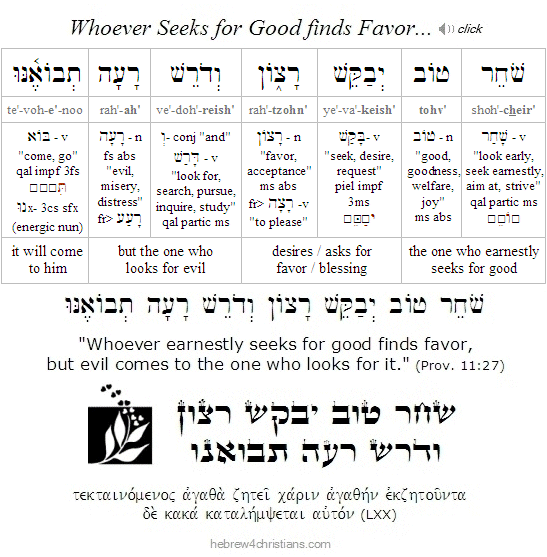 A person with a "good eye" looks at things from the perspective of love. Ayin hatovah looks at circumstances -- and especially at other people -- and finds something beautiful.... There is no trace of competition, no envy, no malice in the good eye; there is no harboring of resentment or bitterness. A person with ayin tovah does not speak ill of others nor inwardly wish them any harm. The good eye overlooks the defects of others and sees the virtue and value of the person created b'tzelem Elohim (in the image of God). The Scriptures declare: Tov-ayin hu yevorakh - "The one with a good eye will be blessed" (Prov. 22:9).