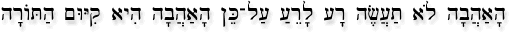 ha'ahava lo ta'aseh ra lare'a al-ken ha'ahavah hi kiyum ha-Torah