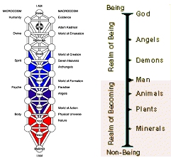 These worlds are interrelated and depicted as "Jacob's Ladder," an overlapping diagram of the "Tree of Life" metaphor. Note that this "layering" of worlds is similar to other forms of medieval emanation theology that understood reality as a "Great Chain of Being" descending from God down to the matter, often regarded as nonexistence, pure potentiality, etc.