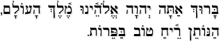 Blessed art Thou, LORD our God, King of the universe, the One who gives pleasant fragrance to fruits.