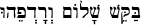 (ba-KAYSH shah-lohm ve-ra-de-FAY-hoo) phr. "seek peace and pursue it" (Psalm 34:14b). This is not a passive state, but calls for dynamic, positive and restorative action. A bakashah is a petition, a request. We must pray and ask God for peace.