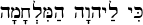 (kee la-Adonai ham-meel-khah-MAH) phr. "For the battle belongs to the LORD" (1 Sam. 17:47).