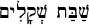 (shab-baht she-kah-LEEM) phr. "Sabbath of Shekels" (from a custom that originated from the half-shekel tax used to maintain the mishkan (and later the Temple)). Read on Sabbath before the 1st of Adar. The Maftir (additional reading) from Exodus (30:11-16) describes the census of every Jew and the obligation to give a half-shekel terumah (contribution) during the month of Adar to pay for the public korbanot (sacrifices) offered in the Bet Hamikdash (Temple) in Jerusalem. For us, it might be a time to remember those who offer personal sacrifices so that we also might draw closer to God. This is one of the Four Shabbatot, or special Sabbaths, that occurs before Passover and is attended with special ritual at the synagogue.
