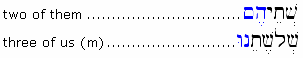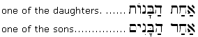 2. Cardinal numbers can occur in the construct state to indicate a link between the number and the noun it modifies. Construct numbers are translated as "one of something," "two of something" and so on (apart from the construct state of number 2, they are used rather inconsistently in the Tanakh).