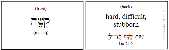 Since there are two possible genders and two possible numbers, there are four forms for every adjective, to agree with the four possible forms of nouns (adjectives do not have a "dual" form as some nouns but use the plural form). Happily, the endings for adjectives parallel the endings you have already learned for nouns, so learning the inflections for adjectives is relatively easy. On the other hand, since Hebrew adjectives share the same endings as nouns, they can be difficult to recognize at times. Moreover adjectives can function substantively, that is, as "adjectival nouns."