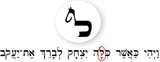 This reads, "As soon as Isaac finished blessing Jacob..." (the flourish on the Lamed occurs in the word killah). The sages suggest that this extra embellishment on the Lamed points to the blessing that God had just given to Jacob, as if it were descending upon him from heaven.