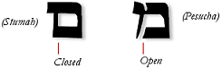 As mentioned above, Mem has two forms: an open form and a closed form. The open form (pesucha) is said to represent the revealed truth of God (as demonstrated by Moses), whereas the closed form (stumah) is said to represent the concealed truth of God (as demonstrated by the Mashiach, the revealer of mysteries).