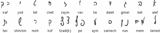 Note: Ladino (Judeo-Spanish) and Yiddish (Judeo-German) both evolved during the middle ages and use the Hebrew characters for transliteration only. Ladino uses a Rashi-style script, whereas Yiddish uses the standard square script.