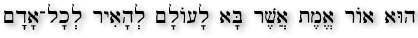 hu ohr emet asher ba la'olam le'ha'ir le'khol-adam