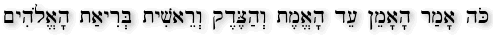 ko amar ha'amein ed ha'emet ve'hatzedek ve'reishit beriat ha'elohim