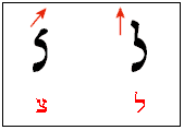 Another set of easily confused letters are Lamed and Tsade. To differentiate them, be careful to note the direction of the ascender for each letter: