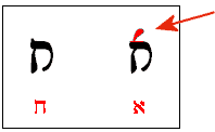 The two most easily confused letters are Aleph and Chet. Notice that with Aleph, there is an extra ascender that is not found in the Chet: