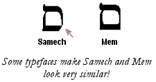 Another set of easily confused letters are Mem Sofit and Samech. These are especially difficult to catch since some Hebrew typefaces make the Mem to look like a Samech. In addition, Samech looks like Mem Sofit in script!