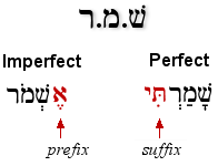 The perfect tense is sometimes called the suffixed form, whereas the imperfect us called the prefixed form (although the imperfect also uses suffixes).