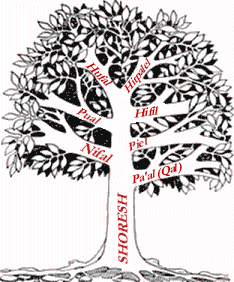 We will begin our study of the Hebrew verbal system with the Pa'al (or Qal) Perfect (conjugation), and progress our way through the other branches and conjugations. For now just make sure you understand the "big picture" of the verbal system and the relationship between a given shoresh (root) and its expression as a particular verb using a pattern of vowels with different prefixes and suffixes.