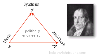 The Hegelian Dialectic is what I call "the devil's logic," based as it is on compromise, calling evil good and good evil, hissing out a seductive appeal to a supposed "higher synethesis" of esoteric knowledge, claiming superiority to the commonsense truth claims of experience, justifying human atrocities, barbarity, callous pragmatism, and even cold-blooded murder for the sake of power and control. From Hegel sprang Karl Marx (1818-1883) and Friedrich Nietzsche (1844-1900), and from Nietzsche sprang Hitler and modern fascism. Propagandists and disinformation specialists are masters at the "Problem → Reaction → Solution" technique for coercing social change. It's the prevailing dogma of the princes of this world, and it is regularly at work in the halls of power today.