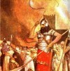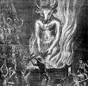 Jeremiah tried to make the people repent from their detestable Molech worship, the "king of fire" (the word "molech" is thought to be a corruption of the Hebrew word for king, melech: מֶלֶךְ, with the vowels of word "shame," boshet: בּוֹשֶׁת, added).  This gigantic statue apparently had an ox's head, a hollow belly, and outstretched arms.  It was said to have stood within a Canaanite temple that had seven chambers.