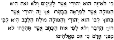 For no one is a Jew who is merely one outwardly, nor is circumcision outward and physical. But a Jew is one inwardly, and circumcision is a matter of the heart, by the Spirit, not by the letter. His praise is not from man but from God." Romans 2:28-29.