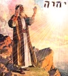 Moses first encountered the LORD at Sinai, "the mountain of God" (הַר הָאֱלהִים), nearly 40 years after he had fled from Pharaoh, while he worked as a shepherd for his father-in-law Jethro in Midian. According to midrash, the Angel of the LORD appeared to Moses in a flame of fire "out of the midst of a thorn bush" on Nisan 15 - the same day that Abraham once had his vision of his decendants in bondage (Gen. 15:12-14). As Moses gazed in wonder, God called out to him and commanded him to remove his sandals because the place (i.e., ha-makom: הַמָּקוֹם) he was standing was holy (i.e., kodesh: קדֶשׁ). God then identified Himself as "the God of Abraham, the God of Isaac, and the God of Jacob." The LORD then said he had seen the affliction of his people in Egypt and heard their cries. "I know their sufferings and have come down to deliver them."  The Angel then told Moses that he was chosen to be the LORD's emissary to Pharaoh to take the children of Israel from Egypt back to the promised land (Exod. 3:1-10). God assured Moses that He would be with him, and "this shall be the sign (הָאוֹת) that I have indeed sent you: when you have brought the people out of Egypt, you shall serve God on this mountain" (Exod. 3:12).