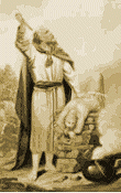 Lot then decided to flee to the hills with his daughters. While taking shelter in a cave, his two daughters (believing that they and their father were the only ones left alive after the apocalypse) got their father drunk, had sexual relations with him, and became pregnant. The two sons born from this incident would become the father the nations of Moab (מוֹאָב, lit., "from the father," i.e., מ+אָב) and Ammon (בֶּן־עַמִּי, lit. "son of my people," i.e., בֶּן+עַמִּי), respectively. In subsequent Jewish hiistory, King David's great grandmother Ruth was a descendant of Moab, and King Solomon's wife Naamah (who bore his successor Rehoboam) was a descendant of Ammon.... After this, Abraham moved south to Gerar. Apparently Abraham had an ongoing agreement with Sarah to pretend to be brother and sister during their travels, in order to avoid clan violence upon settling in a godless area. Sure enough, a Philistine king named "Avimelech" took Sarah to be part of his harem, but in a dream, the LORD warned him that he was a dead man if he failed to return her back to Abraham, her husband. Avimelech did so, and castigated Abraham for his duplicity. However, Abraham was then given his choice of the land in the area.