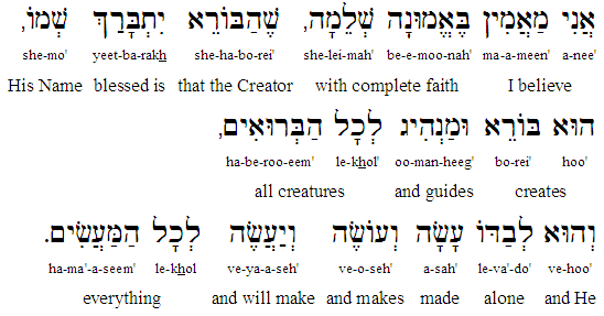 "I believe with complete faith that the Creator, blessed be His Name, creates and guides all creatures, and that He alone made, and makes, and will make everything."